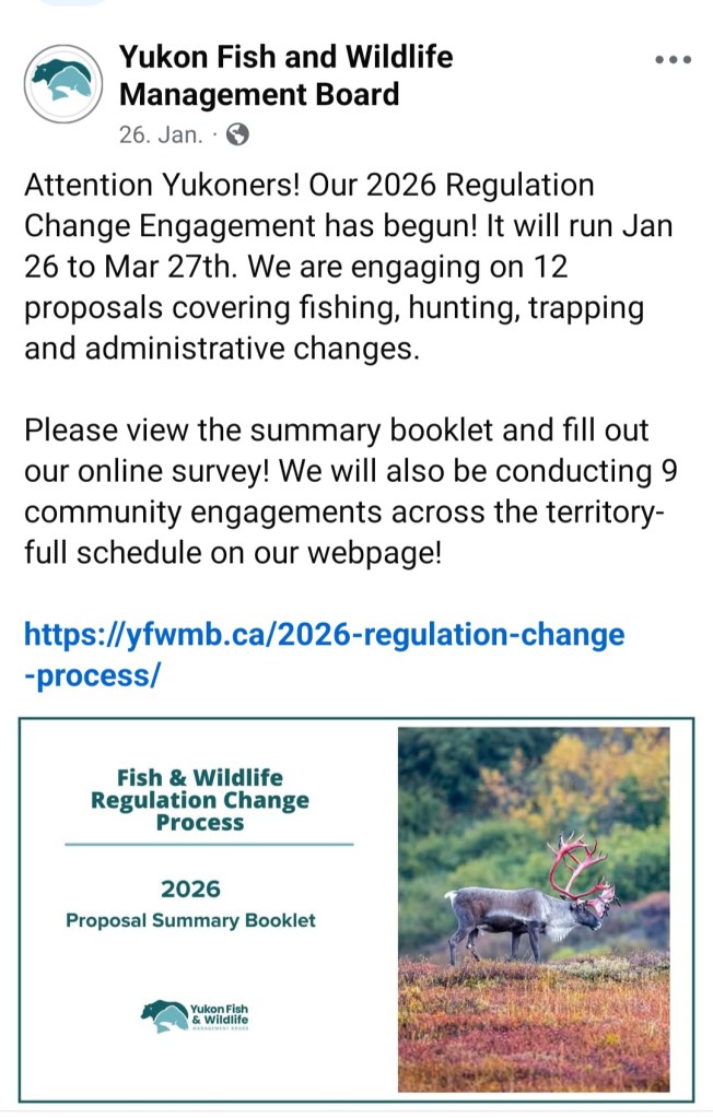 regulations. Attend the March 4 Whitehorse meeting at the Sternwheeler Hotel, 6-9 p.m, or join the online public meeting (open to anyone in Yukon) on March 23 on Zoom session.